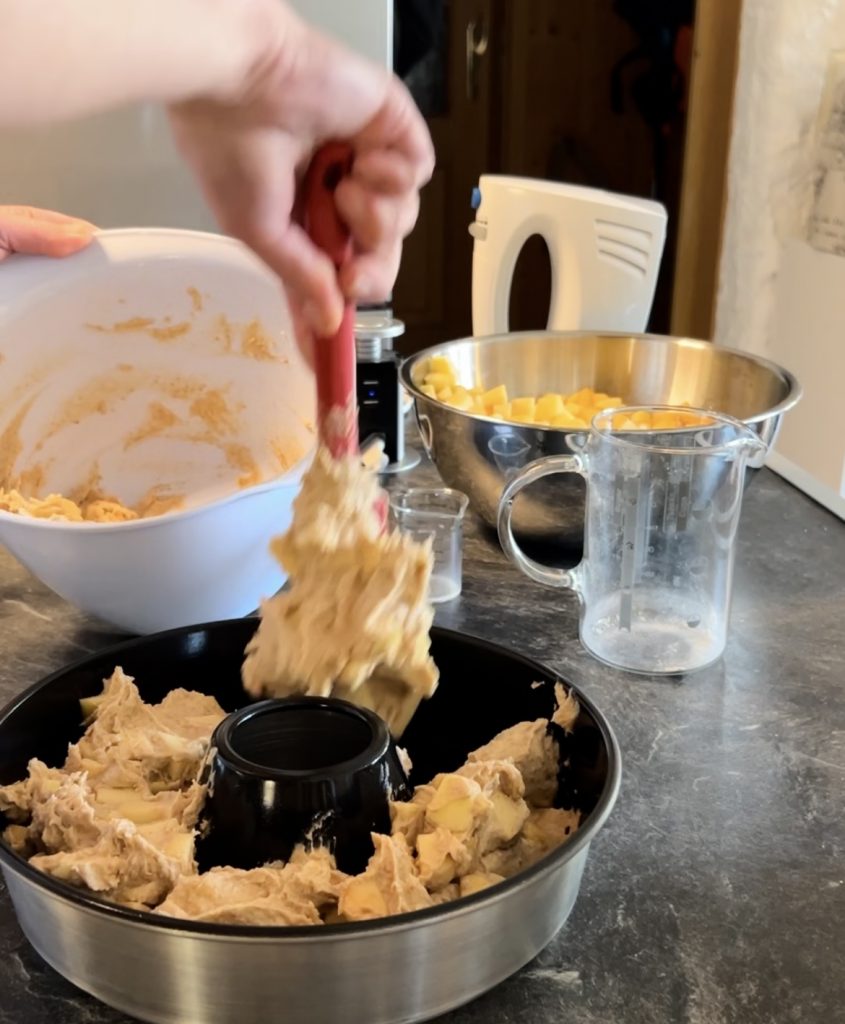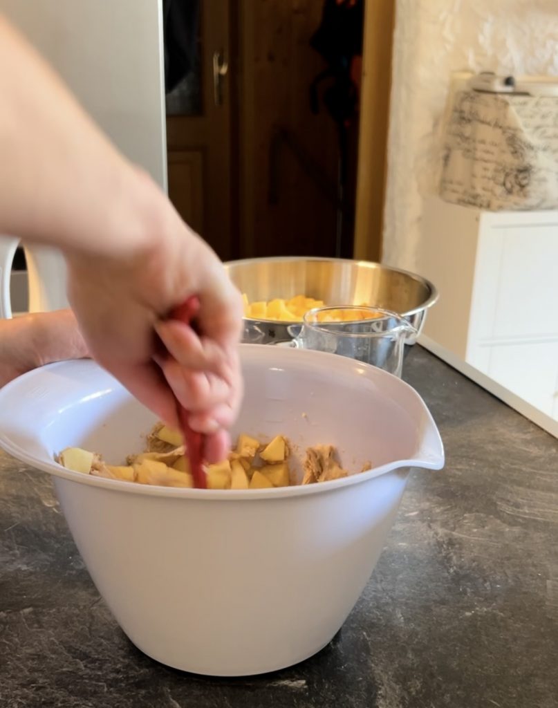 Im Anschluss die Apfelteigmasse in die gewünschte Form geben.