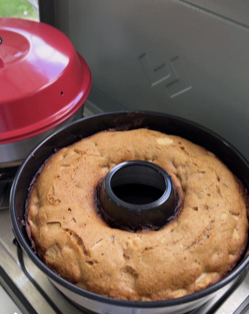 Im Omnia wird der Kuchen 40-60 min auf kleinster Gasstufe (je nach Herd) gebacken.