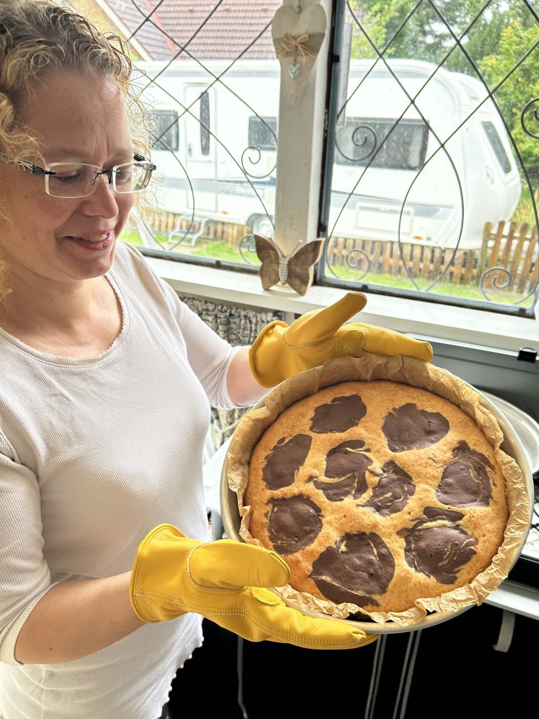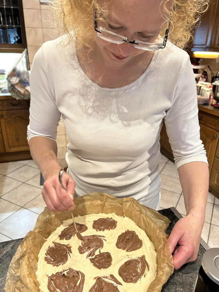 Für den dunklen Teig gebe ich zusätzlich einen Esslöffel Kakaopulver hinein.